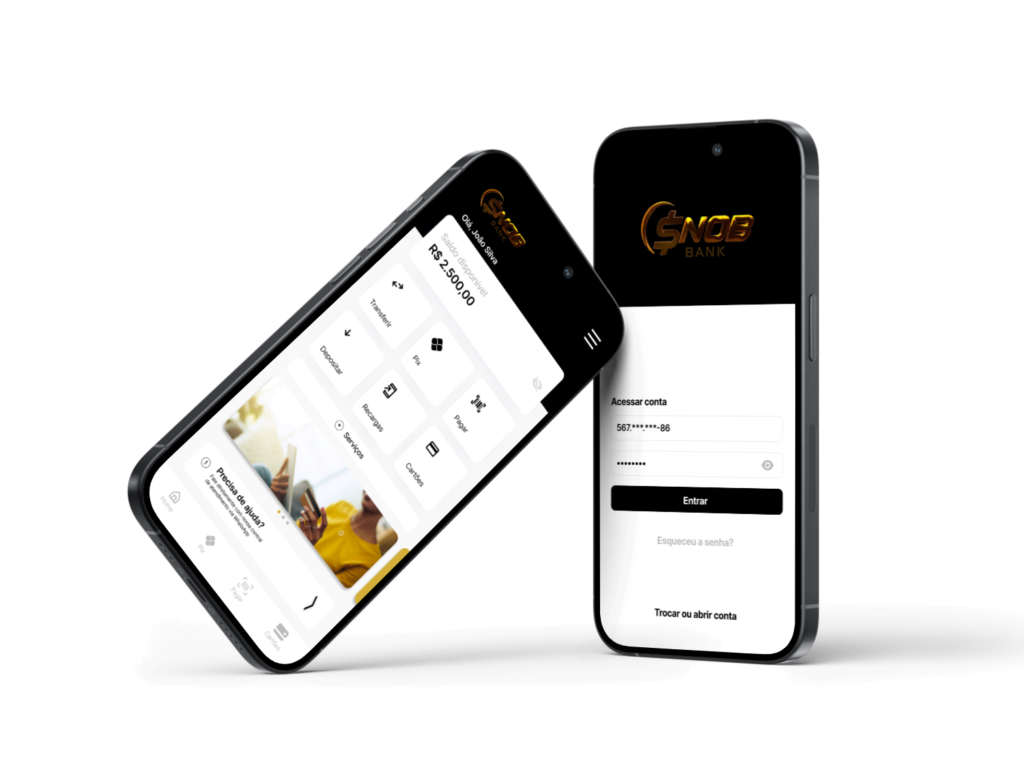 Experimente a praticidade de realizar suas compras com mais facilidade e segurança, diretamente na palma da sua mão. Com soluções financeiras digitais integradas, o Snob Bank traz mais conforto e agilidade para o seu dia a dia.